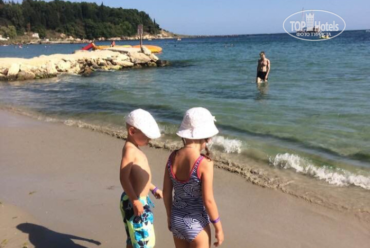 Отель не имеет своего пляжа, хотя и находится на первой линии, пляж муниципальный, поэтому за лежаки на нем нужно платить. Лежаки на территории отеля бесплатны, их достаточное количество, поэтому мы занимали лежаки у бассейна, а на море ходили купаться. Чтобы дойти до моря, нужно спуститься по достаточно высокой лестнице. Море тихое и чистое, есть немного водорослей, но их действительно немного. Пляж неширокий, песчаный, песок мелкий и чистый. Вход в море пологий и плавный, для детей очень удобный. Есть ограничительный буйки, постоянно присутствуют спасатели, которые не дают заплывать за буйки. На пляже есть платные развлечения: бананы, таблетки, водные мотоциклы, параплан. Ежедневно до Старого Несебра курсирует морское такси, цена 10 левов с человека.