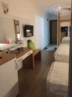 Прилетели в аэропорт Газипаша, летали пегасом (от аэропорта Анталии ехать гораздо дольше), езда от аэропорта заняла около 1 час 10 минут (расстояние 40 км). В отель заехали около 9 утра, нас сразу зарегистрировали и предложили немного подождать, пока номер подготовят. Пока мы завтракали, номер подготовили мы заселились почти сразу же. Номер стандартный, чистый, все работало исправно. Номер был на верхнем 5 этаже с видом на город. Вид потрясающий - на крепость Алании. Если я не ошибаюсь, на эту сторону выходят номера DBL+1 (у нас была 1 двуспальная кровать и 1 односпальная). Так же другие номера выходят либо на бассейн, либо на стену рядом стоящего отеля. Отель маленький, территории нет. Кто привык к анимации и к ломящимся от сладостей столам - вам не сюда). Месторасположение отеля отличное - до пляжа Клеопатра 12 минут (засекали), примерно столько же и до порта Алании (в том числе до Красной башни, советую к посещению). Пляж Клеопатра - самый лучший, по другую сторону горы, как говорили отдыхающие, не очень хороший заход в воду и запах... т.к. рядом Порт. Уборка - ежедневно. Шампуни берите с собой (или купите в супермаркете), т.к. шампунь дают только один раз, когда закончится – не принесут. Пляжных полотенец нет, не обессудьте, отель городской! Бассейн небольшой, но всем места хватало. Еда - учитывая, что это 3*, вполне достойно! Кофемашина работает постоянно – латте, капуччино, горячий шоколад (но кофе не натуральный), а так же автомат с газированными напитками (3-4 вида). Вода в кулере слева при входе в ресторан. Раньше висела табличка «Воду в бутылки не набирать», табличку сняли, т.к. на нее никто не реагировал)-так нам гид сказал.Завтраки достаточно однообразные: всегда вареные яйца, хлопья, часто овощи на пару, луковые кольца, один раз был омлет, солянка (тушеная капуста, сосиски), варенье разных сортов, из фруктов были - арбуз, персики, виноград, апельсин. Обед и ужин - всегда один вид супа, два гарнира и мясо в разных вариациях (одно мясное блюдо, но, как правило, каждый день что-то новое). Различные соленья, всегда зелень, овощи, соусы. Попробуйте соленые огурцы! Нас питание вполне устроило. Всегда было вкусно! Деньги - везде принимают как доллары, так и лиры. Делали покупки в супермаркете MIGROS (к ближайшему магазу идти от отеля направо, второй поворот направо и немного пройдя по правую сторону увидите большие оранжевые буквы MIGROS. Так вот, расплатились за покупки долларами, нам предложили сдачу дать лирами и мы обнаружили, что это выгоднее, чем менять деньги в обменнике. На базарах цены не дешевые, да и качество не соответствует заявленной стоимости. Мы покупали вещи в ближайших магазинах, цены недорогие, на любой кошелек. Покупала топики, футболки по 20 лир в среднем (300 рублей). Небольшой совет, вдруг будет полезно - если обратно летите из аэропорта Газипаша, и если вы голодны, то покушать, возможно, лучше до паспортного контроля (с противоположной стороны от стоек регистрации есть типа кафе, там цены приемлемые и выбор показался более - менее, всякие бургеры и т.д. Перекусить сойдет). Мы туда не пошли, думали после паспортного контроля в зоне ожидания будут кафе, но аэропорт маленький, в зоне ожидания был только дьюти фри и паб - в пабе есть сендвичи, но самый дешевый вроде 18 лир, да и очередь, если не повезет, будет большая, т.к. это единственное место, где можно что-то купить пок
