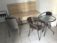 В этот раз был отель Sunshine seaside wing. Ехать до него минут 25. Номера свежие, без какой-либо «затертости», в отеле отдыхают преимущественно русскоговорящие. Первое, что сильно радует– это номера. Относительно большие, 2х комнатные. Сначала идет что-то вроде гостиной с диваном, зеркальным столиком, небольшой обеденной зоной, ТВ. Затем спальня с хорошей кроватью, большой шкаф. Ванная комната с классическим греческим душем, но слив работает хорошо :) Мыло и гель/шампунь. Проблем с горячей водой у нас не было. Кондей бесплатно, сейф платно. Есть фен.