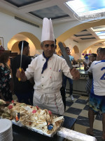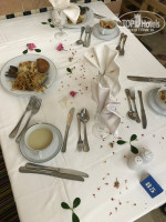 Ресторан на высшем уровне: белые скатерти на завтрак, обед и ужин, и даже в баре на улице, красивая сервировка стола, легкая музыка, романтичная атмосфера. Кухня очень разнообразная и вкусная! Завтраки классические, ничего лишнего (3 вида яиц, различная выпечка, вкуснейшие сыры и колбасы, йогурт, рикотта, тосты, свежевыжатые соки). Единственный минус завтрака - нет каш. Обеды и ужины включают в себя разнообразные блюда на любой вкус! За одиннадцать дней мы не успели все перепробовать, уж очень много всего: курица, индейка, креветки, перепелка, крабы, говядина, баранина, кролик, рыба, печень, различные супы, салаты, гарниры, пицца, шаурма, бургеры... разнообразие вкуснейших десертов на любой вкус, мороженое четырёх видов. На обед и ужин официанты подают вино трёх видов, можно выбрать пиво, спрайт, фанту или колу. Персонал очень дружелюбный, обслуживают на 200 % хорошо, быстро, качественно. Запоминают имена, место, где вы сидите, интересуются, все ли хорошо. Отвечайте им улыбкой и в ответ получите такое же хорошее отношение! Шеф повар каждый обед и ужин выходит в ресторан, контролирует качество блюд, общается, учитывает пожелания. Раз в неделю он устраивает небольшое и очень колоритное шоу, с презентацией фирменного блюда, танцами и музыкой.