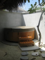 Номер у нас был Superior Beach Villa with Jakuzi. Бунгало было абсолютно новое, в нем до нас никто не жил, некоторые бунгало были еще не закончены и стояли пустыми. Все полностью соответствовало описанию на сайте отеля : 90 кв метров, выход с терассы сразу на кораловый пляж, с другой стороны дворик в котором стоит джакузи. Все бунугало этого типа стоят на кораловом пляже, соттветсвенно если хочется просто поплавать, то лучше пройти на другую сторону острова, где нет коралов.