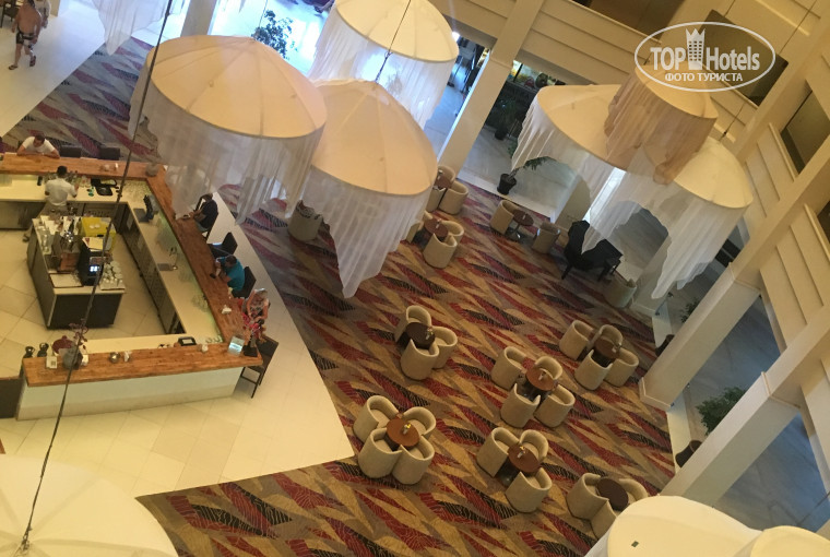 Пишу по свежим следам. Отель оставил хорошее впечатление: заселили нас сразу, белбой подробно рассказал, что где находится в отеле, так что даже путаться не пришлось. У отеля большая ухоженная территория, состоит из многоуровневых террас, смотрится как большой красивый лайнер:) Есть внутренние и панорамные лифты, первое время можете немного путаться, но потом привыкаешь. Питание очень хорошее и разнообразное: каждый день было мясо и рыба, огромное количество фруктов, вкусные сладости. Отель работает по концепции Ультра, т.е. в любом баре можете бесплатно получить напитки и закуски в течение всего дня и вечера. Номер у нас был с видом на море, очень красивые виды, сам номер довольно просторный, все работало, хотя мебель уже следует обновить. Уборка в номере была ежедневной и очень качественной, спасибо милой доброй тетушке, которая у нас убиралась