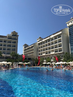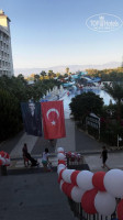 Территория не большая. Напитки и алкоголь наливают во время еды в ресторане а так же в течении дня в лобби и в закусочной у бассейна. Бассейн большой, места всегда есть и всем хватало. Полотенца брали каждый день, с этим проблем нет. Они были чистые и без дырок (как писали некоторые). Лежаки не старые, удобные и не сломанные. Есть водные горки как для детей и взрослых (прям у бассейна). Работают с 10 до 12 и с 2 до 16-30. Посмеяться и провести время можно там. На территории можно поиграть в настольный теннис и вечером покурить кальян (небольшая зона с 5-7 столами работает в вечернее время). Стоимость кальяна 10 долларов, табак только щербетли, вкусов 10-12 там есть. Курили раз 5. Делали очень не плохо. Расслабиться самое то.