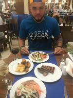 Обед и Ужин очень похожи по выбору блюд. Из гарниров рис, картошка (фри, пюре, иногда по-деревенски), макароны несольких видов, различные приготовленные местные блюда, много овощей, фруктов. Соусы и тд. Делают чаще курицу в виде крыльев которых жарят при вас. Так же есть рыба (местная), названия не знаю. Ничего особенного. Жарят куриное филе. Делают курицу гриль. Каждый вечер на ужин что то делают на углях при вас при выходе из ресторана. Там стоит мангал и на углях запекают овощи, жарят крылья, делают кебаб либо рыбу. Всегда по разному. Мяса там не много, дают индейку и иногда говядину. Столы всегда были свободные, за 10 дней ни разу не было с этим проблем. Очереди были но не существенные. Как и везде. Из фруктов яблоки груши сливы персики арбуз может еще что то упустил.