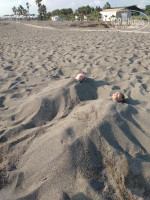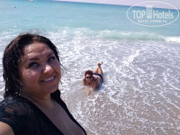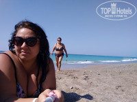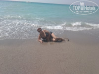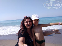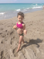 Пляж шикарный ,песочек огромная территория где можно было зарыться и греться в песке , и вход в море прекрасный хоть и есть камешки но они круглые и ноги не ранят ,и просто лежать на волнах и рассматривать камни - одно удовольствие!)