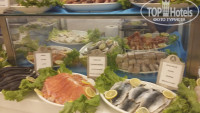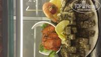 каждый день в меню ресторана присутствуют разные сорта рыбы (дорадо и др. не помню названий), эта рыба , которая готовится, красиво выставлена еще и в сыром виде в витрине с названиями, так что можно воочию полюбоваться не только приготовленной, но живописно выставленной для обозрения. Ежедневно , на завтрак , обед и ужин подаётся слабосолёная красная рыба, кот. также имеет успех у постояльцев отеля. Мы заехали в отель в четверг и попали как раз на рыбный день, где были и осьминожки, и мидии, и суши , и др.