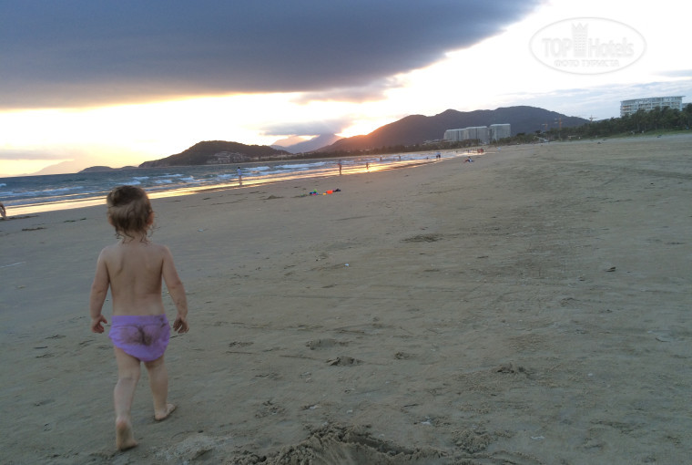 ПЛЯЖ. Пологий, чистый, песок светлый и красивый, в изобилии, убираются ежедневно, работает охрана-спасатель, от лежака до моря не близко, обжигает ноги) Чуть правее пляж в ракушках, собирать по утрам одно удовольствие, только надо порантше, часов в 6, пока Китайцы не разобрали))