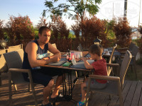 Еда. Тоже приятно удивили. В 2017 году было очень много острой еды! Ребенку 2-х лет мало, что могла найти приличное! Даже картошка фри была серого цвета. В 2018 году - стол был более разнообразен. ввели много достойных десертов, даже тортики. Еда не острая! На завтрак была хорошая приличная рисовая каша. Весной были в хорошей 5-ке, там там каши были утром отвратные. Много овощей, пусть ежедневно одно и то же. НО! это и не 5 звезд! Для трешки очень даже все замечательно! Голодным не будешь! Рыба была, и каждый день! Ввели хороший полдник, где можно так же хорошо подкрепиться - бургеры, сладости, рулеты с сыром и проч. Особо хочу отметить - они сделали свою собственную пекарню! Лаваш и булочки изумительные. Ребенок всегда после ужина ходил и брал еще есть. хотя уже наелся от пуза. С 2017 года осталось плохое впечатление по посуде. Тарелки есть со сколами, керамические стаканы (вечно в заварке по стенкам) заменили на бумажные - тоже хороший ход. Мы привезли пластиковые.