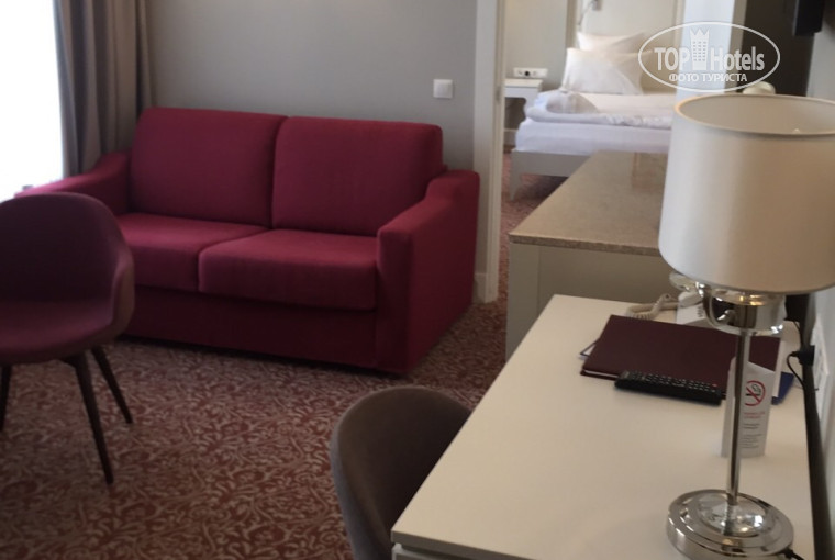 Бронировали стандартный номер в данном отеле. Заранее указали, что будем находится в день рождения и желаемое время заезда. При заселении отдали сопроводительное письмо от tophotels. Были приятно удивлены, что заселили нас в 11.00 вместо 14.00 и не в стандартный номер, а номер Делюкс. Номер с двумя санузлами, отдельными спальней и гостиной. В номере есть все необходимое: полностью заполненный бар, приветственные 2 бутылки воды, утюг, фен, чайник с чаем и кофе. Убирали каждый день. Завтраки с 8.00 до 11.00 в выходные дни. Завтрак разнообразный: чай, кофе, соки, йогурты, различные виды приготовления яиц, овощи, мясные нарезки, соленая и другая рыба, фрукты и т.п. В отеле есть тренажёрный зал и сауна. Сауну надо предварительно бронировать. Расположение отеля отличное. В шаговой доступности продуктовый магазин и множество кафе. Данный отель оставил только приятные впечатления и всем рекомендую.