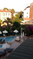 Отдыхала в отеле с 02.06 по 10.06 вместе с двумя детьми. Все очень понравилось. Практически весь персонал свободно разговаривает на русском. Номера чистые, уборка каждый день. Есть тренажерный зал, сауна, а хамам - 20$, но я не ходила. Два бассейна, горка,ее включали два раза в день по часу. Что касается питания, то все вкусное и свежее, единственное не понравились помидоры и огурцы, они тепличные, вкуса никакого. Тоже самое и фрукты, персики, нектарин и абрикосы никакие. Мы брали арбуз, дыню и апельсины. Бар возле бассейна и на пляже. Каждый день раздавали мороженное. Каждый вечер развлекательные программы и для детей и для взрослых. Днем тоже Мустафа и Алмаз туристов развлекают и на пляже и возле бассейна. Так что никаких нареканий нет.