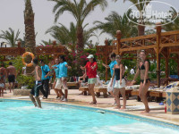 Территория отеля большая и зеленая, 3 бассейна, центральный бассейн с баром и подогреваемый. Пляж большой,песчаный, места под зонтиками и огорожены от ветра. Но иногда мест не хватало, так что лучше приходить по раньше. На пляже волейбольная площадка, есть бар и ресторан, душ с пресной водой. Лежаки на пляже ужасные: старые матрасы, полотенца застиранные (но чистые). Вход в море: надо пройти метров 100 в воде по колено в воде (сначала напрягало, потом вошло в норму). Коралы есть, до них плыть метров 300, в ластах это не проблема доплыть. (с берега видна песчаная коса, пересекаем ее, там коралы и рыбки НОРМАЛЬНЫЕ, как в Шарме!!!!) Питание: дыня, арбуз, финики, апельсины, грейпфрут, яблоки, груши, клубника-есть!!! сам видел и ел!!! мясо вареное, жареное, печень, курица, рис, картошка-регулярно!! помидоры, огурцы, перец-свежие, сам выбираешь и повар чистит их и режет. Сладостей очень много. Отличные соки из пакетов, пепси, спрайт, кола. Слабоалкогольное пиво, джин тоник из банок-хорошего качества, вот вино не очень. Не понравилось то, что в ресторане были большие очереди. В номере убирались хорошо. У нас окна выходили на дорого, там очень шумно, по возможности поселитесь в номер с окнами во внутрь!!! Не поленитесь положить чаевые в баре и ресторане (как делают иностранцы) и вас буду обслуживать быстро и качественно! В баре под терассой не хватало стаканов, а один бармен явно не справлялся наливать, мыть и собирать посуду. (этот бар мне не понравился, а в остальных нормально все). Гиды мостревела молодцы, свою работу выполняют качественно. Анимация: танцы у бассейна, гимнастика, волейбол, развлекательные программы вечером, с детишками танцы после ужина- в общем есть недостатки, но в целом хорошо. Номера: хорошие, кондишен работает хорошо, ящик показывает 3 наших канала. Итак, отель стол мне 2100 баксов на троих, считаю соотношение цена-качество оптимальное. (хотя в отеле были ...{удалено модератором} которых почему то все не устраивало: ни питание, отсутствие коралов и рыбок у берега и напитки. если вы не из них, то все будет здорово)