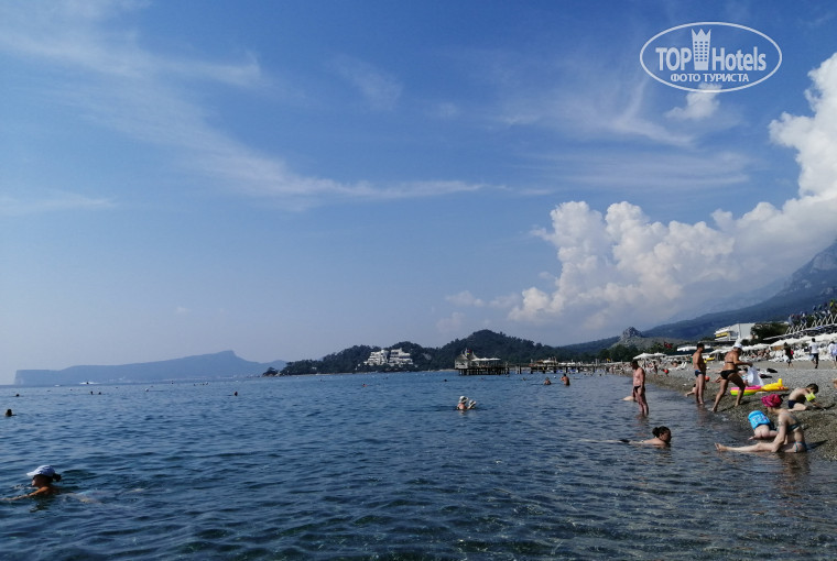 До моря ехать на автобусе 3-5 минут, мы съездили один раз и потом ходили на пляж эльдар отеля, пешком минут 7-10, вообще не напряжно. Обязательно нужно купить тапки для плавания, иначе по гальке ходить смешно и больно)) в магазинчиках недалеко от отеля они по 5 долларов стоят.