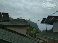 В пешей доступности магазины, базар, парки Клеопатры. Большие номера и террасы. Мы жили в студии на верхнем этаже. В наличии есть плита для приготовления еды, чайник, из которого постоянно вытекала вода. Кухонный инвентарь в виде кастрюли, сковороды, дуршлага и посуды. Можно приготовить при желании себе еду. Холодильник достаточной вместимости. Кондиционер, работал нормально после ремонта. На террасе можно загорать топлис. Вид нормальный на горы, немного видно море и хорошо видно фуникулер. С другой стороны вид на горы Алании. Вайфай был в номере, хотя корпус у нас четвертый, верхний этаж. Не всегда хороший, но пообщаться в вацапе с родными и друзьями удавалось.