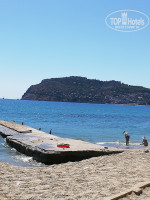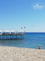 Море обалденное, заход не самый плохой, из тех, где мы отдыхали в Турции лучший, на мой взгляд. Берег песок, заход камни, потом полосами, песок-камни-песок, это там где можно ещё стоять, дальше глубоко. Камни при заходе не очень острые, мы заходили между пирсом и волнорезом, без дополнительной обуви. Лежаков с зонтиками всегда хватало, полотенца мы привозили с собой.