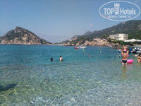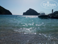 1) Есть в центре Палеокастрицы (минут 30 пешком от отеля) пляж с песком (камней там тоже достаточно). Стоит посетить, но принципиально он не лучше того, что рядом с отелем. Оттуда можно легко отправиться на лодке по гротам или к пляжам, так как на Agia Triada Beach не всегда есть свободные лодки.