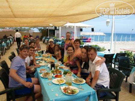 Отель выбирали недолго! Он действительно стоит на первой линии! Поселили нас на 2 этаже в номере с изумительным видом на море! За отелем шикарный вид на горы. Встретили нас хорошо- на ресепшене Умут и Амир(хорошо говорит по русски). На следущее утро я сходил в хамам при отеле- очень понравилось, только ради этого стоило съездить в Турцию. Отдельное спасибо Валентине (массажист) за ее профессионализм. Питание в отеле не плохое- всегда были овощи, фрукты, из мясного в основном курица, а также часто давали рыбу. Аниматоры в отеле - отличные парни.