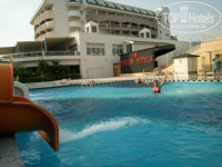 Очень хороший отель, питание на 5,уборка номера каждый день, даже обувь нам красиво раставляли, и платья на вешалки развешивали! Вечерняя анимация весёлая) Пляж мелкая галька, немного больно ходить по ней(но зато массаж ног))) Массаж отличный при отеле) Алкоголь хороший, особенно вкусный бейлиз) Каждый вечер была дискотека при отеле, включали русские песни! В отеле было много немцов и французов! Они на дискотеку не ходили, т к боялись русских пьяных мужчин.Красивая и большая территория! Горки классные!