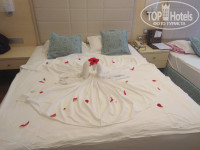 Заїзд в готель: Ми приїхали в 13.00 одразу нам дали ключі від номеру, працівник готелю заніс нам валізи, запитав чи номер нам підходить. Номер не новий, маленький але все є, кондиціонер працював добре, постіль і рушники міняли щодня, прибиральниця дуже привітна, робила постійно лебедів з рушників і прикрашала номер квітами. Біля ліжка є два додаткових включателя одна клавіша - не турбувати а інша - потрібно прибрати, а на коридорі біля дверей засвічується те що нажати, це дуже зручно. Окрім гелю для душу і шампуню ще є додатково лосьйон для тіла. Вигляд з номеру частково на море. За номер нічого не доплачували.
