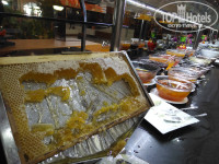 Ресторан великий, місце завжди було, їжа нормальна, смачна, особливо супи, завжди різні. Біля кожної страви стояв планшет, там вказана назва страви на 4 мовах і було два смайли, можна проголосувати чи смачно. Був окремий дієтичний стіл, і окремий стіл з меню для дітей (меню те саме що і основне), але сам стіл був нижчий і діти самі мали можливість собі вибрати і накласти те що хочуть. Фрукти: кавун, диня, груші, нектарини, яблука, різний виноград, сливи.