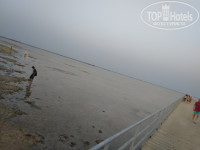 Пирс длинный, но не достроенный. Вход в море постепенный с берега (по время прилива воды по полено, во время отлива- по щиколотку) либо с пирса (имеется небольшой участок с песчаным дном для плавания). Рыб практически нет. Желающим посмотреть рыбок можно взять экскурсию. Спуск с пирса в воду по ступенькам, по которым не приятно ходить, так как обмотаны ослизневшим материалом, перила ступенек в коррозии.. Полотенца пляжные выдают и меняют без проблем.