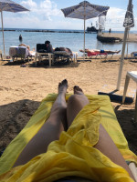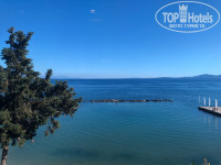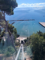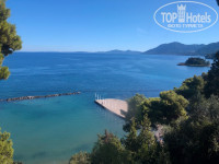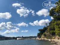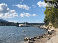 На пляж ходили в соседний CORFU Palace. 2 лежака и зонт - 8 евро. Можно пройти через верх по дороге и через отель, потом спуститься на лифте. Никто не останавливает и не спрашивает куда ты и зачем, а можно через низ по берегу. Ходили по-разному.