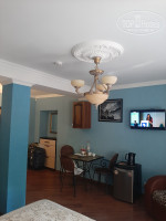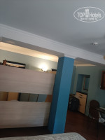 Сам отельчик малюхотный,необычный, симпатичный.Номер просторный, все необходимое в номере есть. Халаты,тапочки,сейф, чайный набор и вода в бутылках, холодильник, сплитка. Большая двуспальная кровать и двухярусная кровать (на которой свободно умещается взрослый). Персонал доброжелательный. Уборка каждый день. Завтраки так себе (сырок,колбаска,компот и то вареники , то перец фаршированный, то омлет ,ну и хлопья с молоком), вроде ассортимент есть,но все не вкусное (по крайней мере,для нас).
