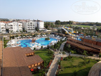 Территория отеля не большая, но ухоженная. Очень понравилось музыкальное сопровождение на территории - приятный лаунж. Бассейн большой и теплый. Горки не опробовали, но меня удивило, что они заканчиваются ничем, не встречала такого ранее. В спа-центре можно было воспользоваться сауной и соляной комнатой. На территории есть кальянная, кальян 10 евро или 12 долларов, один раз попробовали - не понравился совершенно. В шаговой доступности от отеля античный Сиде для прогулок и LC Waikiki для шоппинга.