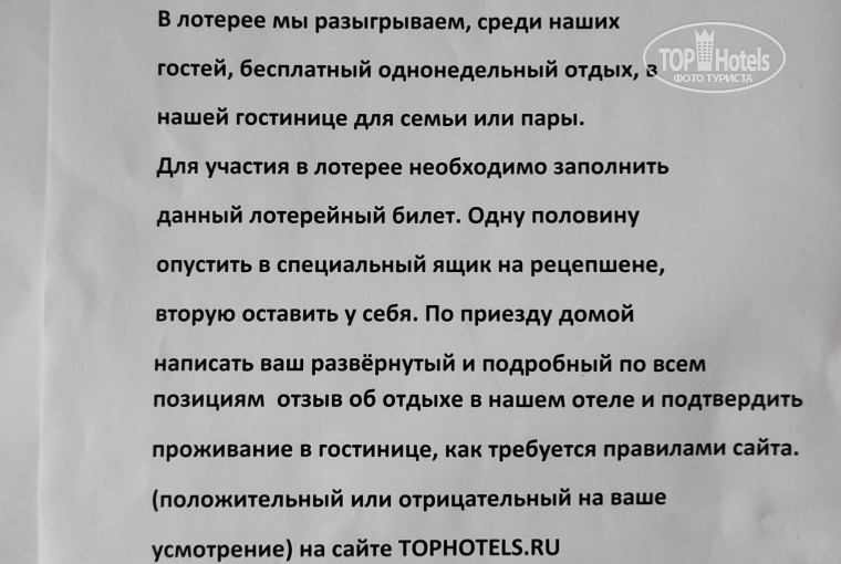 Оценка сервисов отеля автором