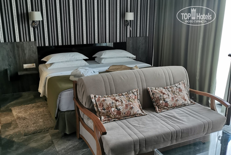 Отель расположен от а/п Сочи в 13 км, такси около 250 рублей. ехать минут 15 . Отель новый, чистый, уютный. Несомненный плюс в том что он маленький, людей не много. Очень доброжелательный персонал. Номер большой, есть все что нужно, халат, тапки, душевые принадлежности, утюг и гладильная доска в номере. На ресепш можно взять зонты. Воду приносят каждый день. Кровати по 2 метра в ширину, очень удобные. Питание на завтраках, все вкусно - есть омлеты, каши, красная рыба, йогурты, кофемашина и пр. На 4м этаже терраса где можно загорать или просто посидеть. Кругом магазины , столовые и кафе. До пляжа 1 минута. Пляж крупная галька, по мне крайне не удобно, поскольку довольно крутой спуск к воде, так же на пляже плиты. Море грязное. Зато набережная красивая, за пол часа можно дойти до Олим. обьектов, вдоль много кафе. Много самокатов в аренду. Так же кругом можно взять каршеринг без проблем. При отеле есть ресторан LA Luna, из него можно заказать еду, официанты приходят прямо в номер.