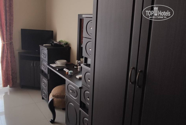 3) груда тумбочек и 2 шкафа заполонили номер, к шкафам прибиты какие-то крючки (зачем и почему не понятно)