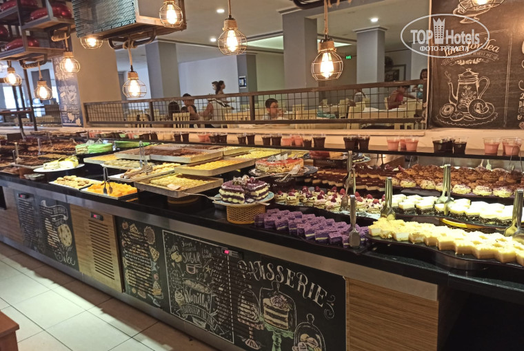 ПИТАНИЕ. Всегда приходили к открытию ресторана, так как читали в отзывах, что мест не хватает. Если подходите попозже, то места надо искать. Пищу сам не берешь, а тебе накладывают. Это не очень удобно конечно, может на пробу взять хочешь чуть-чуть, а тебе накладывают сразу гору еды непонятной. Для людей с плохим зрением не очень видно, какие блюда стоят на стеллажах. Но, в общем, питание понравилось. Все на свой вкус нашли. Кому-то мясо понравилось, кому-то рыба. Очень вкусные закуски, турецкая пицца, супы. В общем, наедались до отвала. С 3 часов дня дают мороженое. В начале очередь большая, но если под конец подойдешь, то без проблем.