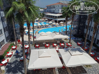 Отдыхали в данном отеле с 1 по 8 августа всей семьей – 4 человек. До отеля доехали в 12.30. Сразу одели браслеты и отправили на обед. После обеда сразу дали номера. Так как заказывали два номера стандарт, то попросила по возможности дать номера рядом. Спасибо большое, что откликнулись на просьбу. Было очень удобно, что все рядом. Номера дали в 4 корпусе на 4 этаже. Номер отремонтированный. Все имеется: сейф, чайник, фен, холодильник. Холодильник не совсем морозит, но воду охлаждать можно было. Балкон выходит на соседний отель. Там до 23.30 играет музыка. Но нам это не мешало. Все равно ложиться спать рано не получалось. Территория отеля небольшая. До моря 5 минут пешком. Самый спокойный корпус, наверное, 3 корпус. Около 2 корпуса стоит сцена, бассейн, всегда играет громкая музыка. Наверное, там, если дети маленькие, на послеобеденный сон не уложишь. В отеле было много семей с маленькими детьми. Русскоязычных было очень много.