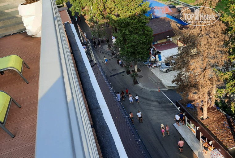 Море рядом, вид из номера прекрасный. не хватает балкончика - было бы вообще восхитительно. Брали без питания. На первом этаже есть столовая.