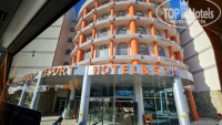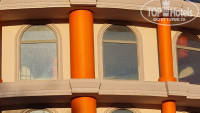 Ночью отель мрачный - подсветки здания нет, неработающий фонтан на входе, сквозь грязные окна пробивается тусклый свет, в холе полутьма, на электричестве экономят.