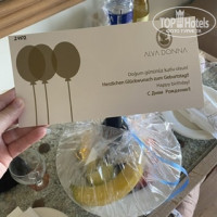 Мы прилетели в Анталью в 5:00, а в отель прибыли в 8:00 (но ехали где-то час, много времени занято ожидание других туристов в автобусе). На ресепшн был не очень приветливый мужчина, но в целом норм. Заселили около 10:00, за это большое спасибо. Так же нам дали номер с боковым видом на море, так как мы молодожены. И ещё в номере нас ждал небольшой комплимент в видел фруктов и шампанского.