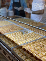 Колбаса не вкусная и жутко выглядит, сыры ок, много свежей зелени и овощей. За яичницей всегда была очередь и мы стали брать омлет по-турецки, ооочень вкусный. Также рекомендуем гёзлеме и бёрек. А вот овощи гриль совсем не гриль, а во фритюре. Неприятно были удивлены, что некоторый персонал на раздаче практически бросал еду в тарелки с суровым видом. Были как приветливые, так и очень неприветливые люди.