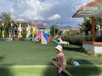 На территории мини-клуба есть бассейн, лужайка с горками и качалками, правда ни одних качелей. Зато внутри клуба стоят даже батуты. Вечером за 3 доллара можно покатать реьенка на машинке на пульте управления.