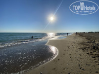 Море за счет реки рядом контрастное, то холодное, то теплое. Немного мутновато. Пляж - песок/мелкая галька, заход достаточно пологий. Стоит отойти на 2 км от центрального пляжа влево и вода теплая, и прозрачная.