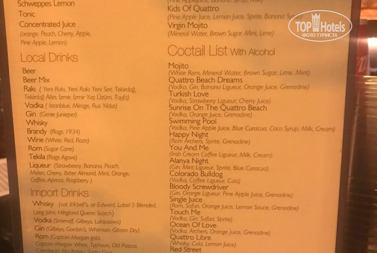Алкоголь и напитки: по определенным причинам, из алкоголя могу пить только текилу, ром в коктейлях и люблю местный «бейлис». Со 2го по 5й день именно этого алкоголя не было ни в одном баре)) мохито вкусный! Молочные и б/алк коктейли съедобные))