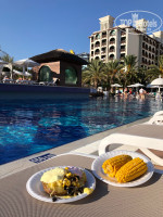 Завтраки ни о чем. Сыры очень соленые, на колбасы в Турции никогда не было надежды, очередь за омлетом и глазуньей. Отварные яйца грязные (если вы меня понимаете) и в названии 5мин-на самом деле синюшное-переваренное. Выпечка и круассаны дубовые! Лично мой выбор пал на бублик симит и сыр типа каймак. Ещё иногда глазунья-за ней очередь меньше, чем за омлетом))