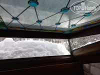 Отель расположен в центре, в парке возле Новгородского Кремля, занимает верхний этаж старинного здания (объект культурного наследия), построенного в 1901 году, под крышей - в нашем номере были потрясающие витражные мансардные окна.