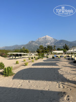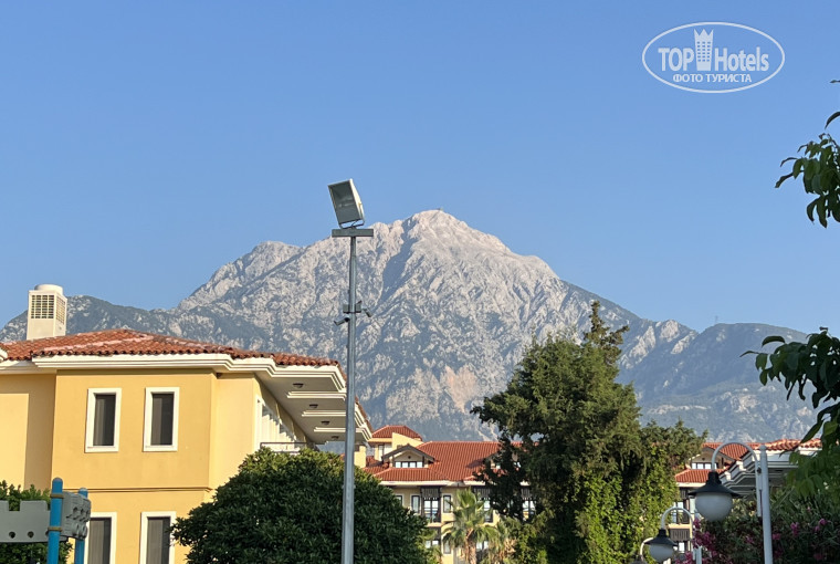 Территория небольшая, уютная , очень красивый вид на горы, хороший широкий пляж (песок/галька). Отличный Пирс с баром, с несколькими площадками для прыжков, два душа , лежаки, зонтики.