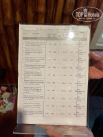 Меню (специальное , отличается от основного меню этого ресторана) нам выдали, когда мы уже сели кушать и пришли к ним. Может и можно заранее посмотреть состав блюд. В нашей карточке на выбор были 2 салата, 2 основных блюда, напитки в соответствии с вашим типом питания в отеле.