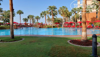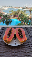 Ужин, который мы пропустили перенесли на обед. Питания брали завтрак/ужин его вполне достаточно. На обед покупали фрукты в Марина Мол(доехать на такси 12 дирхам, можно дойти пешком утром или вечером) и делали бутерброды с копченым лососем. Питание без изысков, но все вкусно. Много зелени, овощей, фруктов(арбузы, дыни, яблоки, апельсины, грейпфрута, груши, бананы, ананасы). Из рыбы только терапия, из мяса говядина, баранина, курица. В разные дни готовят мексиканские, итальянские, корейские и др.кухни мира на ужин. Ребенка на ужин накормить сложно, особенно в дни корейской кухни(все острое), но мы всегда находили что нибудь более менее подходящее. Детского меню/стола нет. Напитки всегда очень холодные. Но сервис шикарный,принесут и чай и кофе и соки. Сервис на 5+. В ресторане всегда помогут со столиком, принесут напитки и детский стул. В номере очень хорошо прибираются. Что нас удивило, дак это уборка 2 раза в день. Несколько раз оставляли чаевые. Если в номере заканчивается вода, звонишь 0 и просишь воды.
