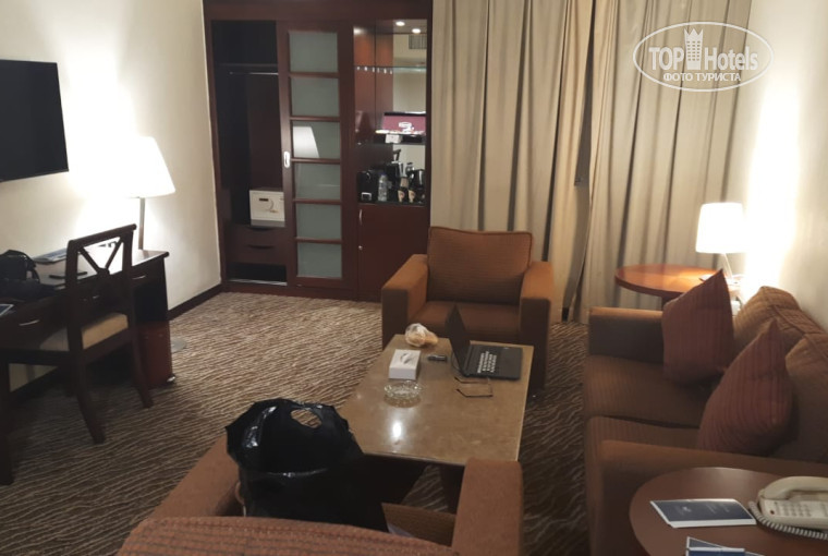 По прибытии оказалось что все номера заказанной мною категории заняты и нас поселили на сутки в двухкомнатный номер без всяких доплат, так что мы пожили в двух номерах разной категории. Кстати букинг утверждает что у отеля 4 звезды и я склонен согласится. Кофемашина в номере махровые халаты в шкафу. Не похоже на трёшку. Мебель выглядит симпатично и дорого, при желании на ней конечно можно отыскать царапины, но если не искать производит очень хорошее впечатление. В ванне есть всё, от кучи полотенец до крема для бритья. Хороший Wi fi. Из недостатков пожалуй следует отметить шумноватые вентиляторы кондиционеров и отсутствие в одном из номеров адаптера под евророзетку. Очень понравилось расположение. Пляж не напротив отеля, но вполне себе в пешей доступности пляж бесплатный, пляжные туалеты с кондиционерами, в питьевых фонтанчиках вода охлаждается в холодильных установках. Недалеко Абу Даби Молл вокруг полно магазинов и разных кафе, в 150 метрах от входа в отель ирландский паб. Понравился индийский ресторан в отеле. После поездки по золотому треугольнику индии очень невзлюбил индийскую кухню. Был неправ. Просто индийскую кухню следует употреблять вдали от Индии. Ресторан при отеле рекомендую даже больше чем сам отель. Меню по QR коду-красота. Да забыл: телевизор, маленький холодильник всё есть. Бесплатная вода, чай, кофе и какие то батончики но мы их не пробовали. Одноразовые тапочки. Вид из окна на выжженный солнцем парк. В отеле есть свой бар мы жили над ним,но музыки не слышно, очень хорошая звукоизоляция.