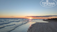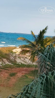 Пляж. Он прекрасен. Это последний пляж на косе, дальше никого, можно выбрать себе место по интересам, можно гулять туда и сюда, советую хоть раз встретить там рассвет. Песочек, заход пологий, в центральной части на дне попадаются редкие камни, не критично. Я коралки не носил. Есть один нюанс: на дюне, которая отделяет пляж от территории отеля, помимо прочего, растут очень противные колючки, не советую ходить там босиком, пару раз я наступал на них даже и на песчаных тропинках, носите обувь.