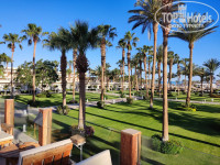 Большая, красивая и ухоженная. Она не похожа на классические египетские отели. Видно, что поработали дизайнеры над территорией. Очень все стильно и продуманно, газончики стригут. Вы не увидите какого-то мусора. Много интересных мест, глазу приятно, идешь и визуально наслаждаешься территорией. Вечером есть где прогуляться, везде подсветка, дорожки. Есть горки, правда ни разу не катался, но видел народ катался. Бассейн около главного ресторана не подогревается, никто там не плавал. Основной ресторан около пляжа с подогреваемый. Вода даже горячая показалась, очень комфортно. Есть джакузи, можно немного побалдеть)) На территории есть настольный теннис в двух местах, бильярдный стол, аэрохоккей и настольный футбол - все включено в стоимость. По всей территории много баров. Так же есть бургерная и пиццерия. Очень вкусно.
