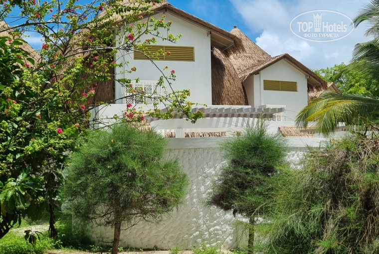 Есть новый современный двухэтажный корпус, видно на фото в голубых тонах интерьер. 10 номеров. Для пар классно. Вид на океан есть. Внутри красиво. Но номера небольшие. Пляж напротив шикарный.