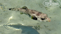Много рыбок. Из-за спокойной воды в море получились неплохие фото рыбок с пирса. Мы купались с первого спуска, уходили подальше и подолгу отдыхали в тёплой воде моря. Жена плавала с трубкой-маской с последнего спуска пирса где риф. Да, в сравнении с Шармом, а в Шарме мы были, кораллы не "блестят", вода мутновата, но рыбок разных вполне достаточно.