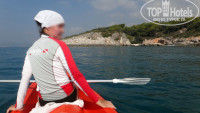 Со слов местных жителей, отель задумывался как некий спот для кайтеров, виндсёрферов, катамаранщиков и прочих любителей парусных (и не только парусных) видов спорта. Отсюда – выбор локации; множество катамаранов на фотографиях первых лет; шесть теннисных кортов; велосипеды при входе; «олимпийский» бассейн 50х25 м и нетипичная площадь номеров. Но что-то пошло не так (то ли роза ветров не та, то ли ещё чего-то) и центром притяжения для «ловцов ветра» отель не стал. Не сложилось. Владелец к идее охладел. И теперь на одном из кортов – детская площадка, а ещё три просто заброшены; в бассейне – попсовые горки и (мать её) пенная дискотека; на пляже – только банан и парашют; а велосипеды сломаны и стоят для красоты. Вообще, весь спорт.инвентарь ровно такой, чтобы можно было сказать: он у нас есть, а если вас не устраивает качество – это ваши проблемы. Обобщая, можно выразиться так. Сегодняшний отель – это крушение чьей-то оригинальной бизнес-идеи и слепой поиск нового концепта. Пока что поиск упёрся в «а давайте как у всех». Жаль… Вот прям жаль.